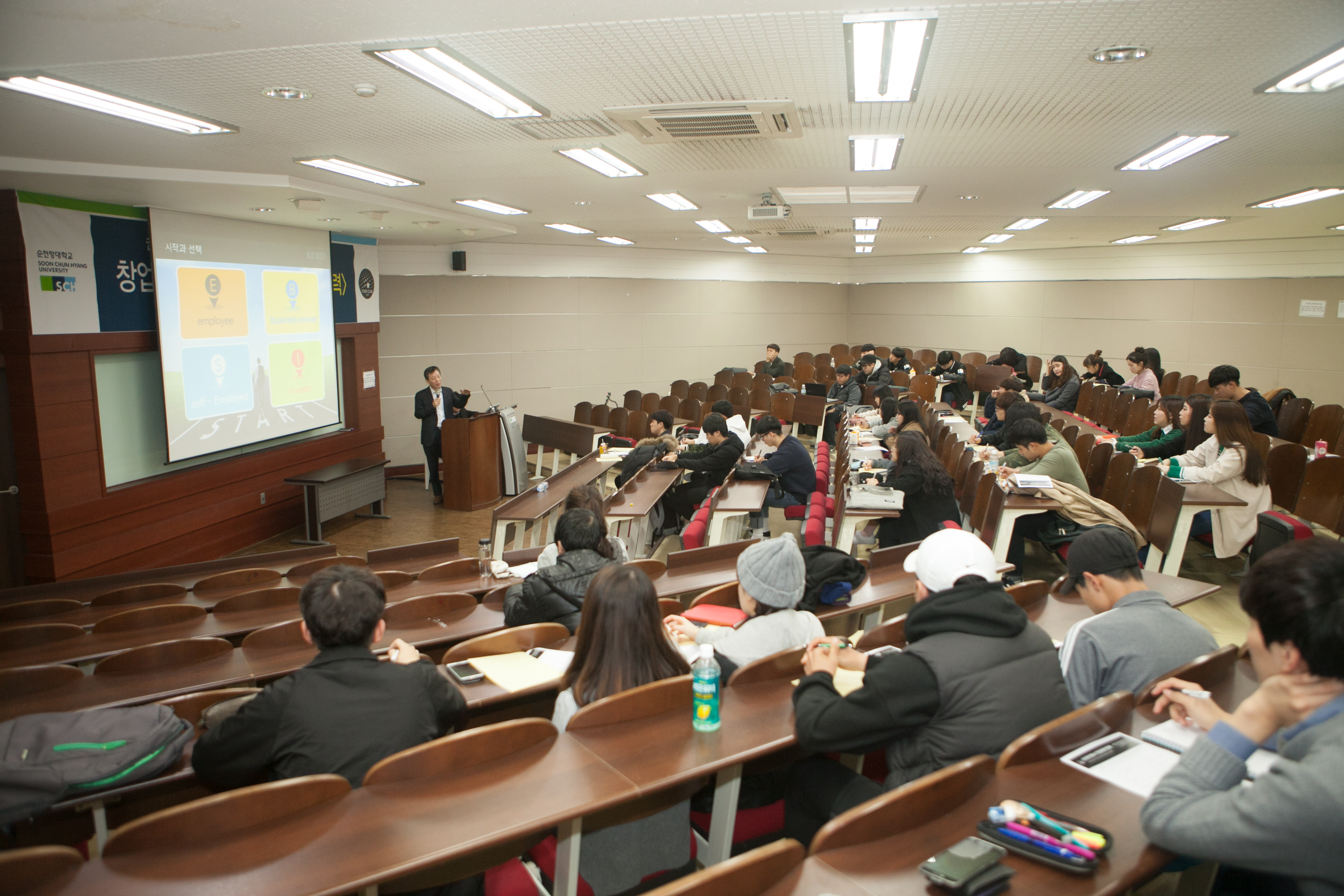 순천향대학교와 (사)한국중소기업경영자협회가 협력하여 2016년 봄/가을 학기에 개설한 ‘벤처정신과 국가경쟁력’ 강좌는, 현직 기업 대표 10명이 직접 강사로 참여해 창업 과정에서 얻은 실질적인 경영 노하우를 생생하게 전달하는 것이 특징입니다. 서창수 창업지원단장은 “성공한 CEO를 초빙해 기업 현장의 경영활동을 듣고, 벤처기업 경영자들의 노하우를 통해 기업과 경제 현상을 올바르게 이해함으로써, 학생들이 기업가정신과 경영 마인드를 갖출 수 있는 기회를 제공하는 것이 강좌의 목표”라고 설명했습니다.
