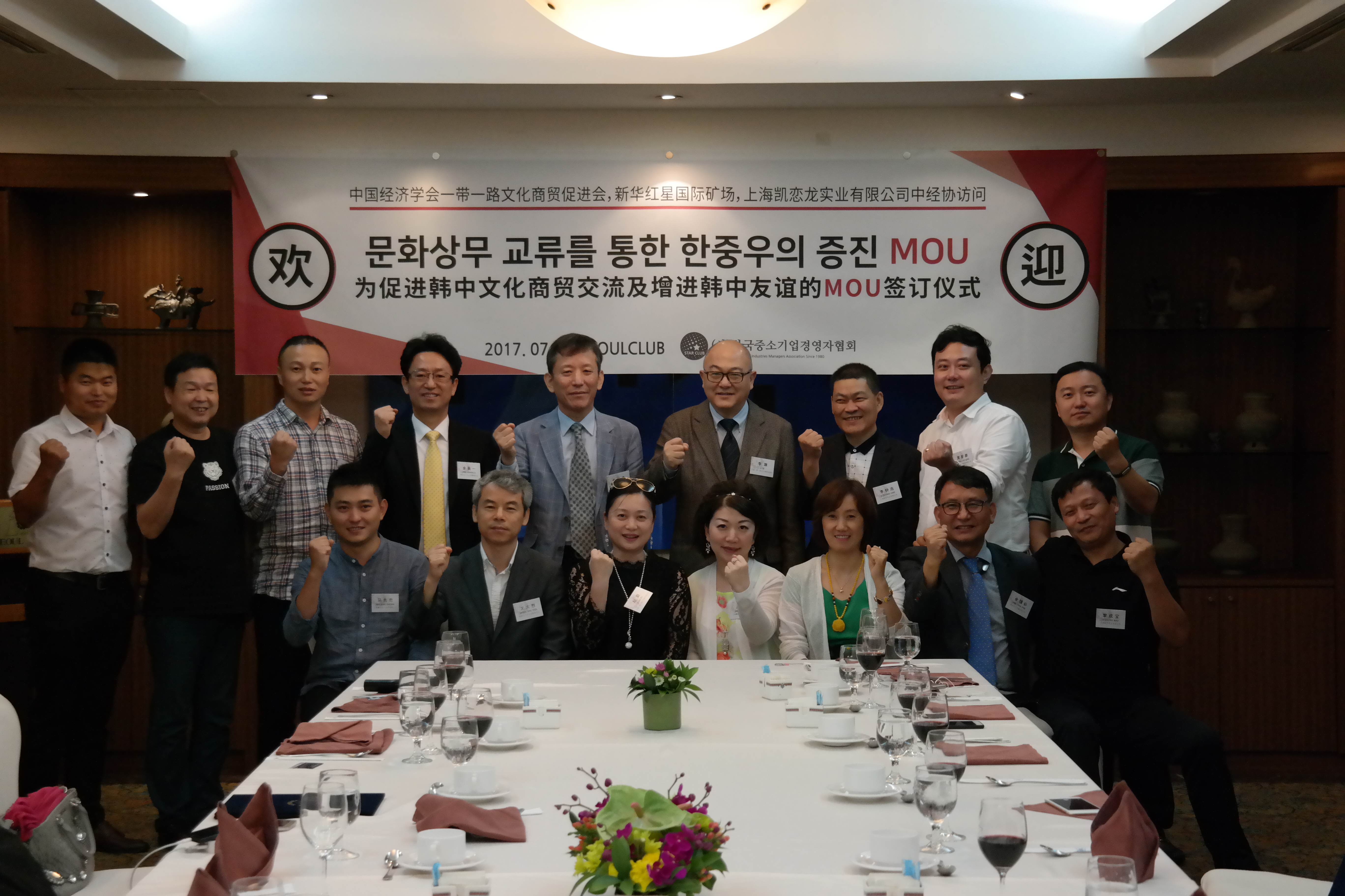 서울클럽에서 중국경제학회 일대일로문화상무촉진회,중국 홍성그룹 상해웨샹자산관리공사, 중국 홍성그룹 산하 상해케이랜드드래곤실업유한공사와 한중 양국 중소기업의 교류촉진과 기업융합을 통한 동반성장과 우의증진을 위한 업무제휴 협약을 체결했다.