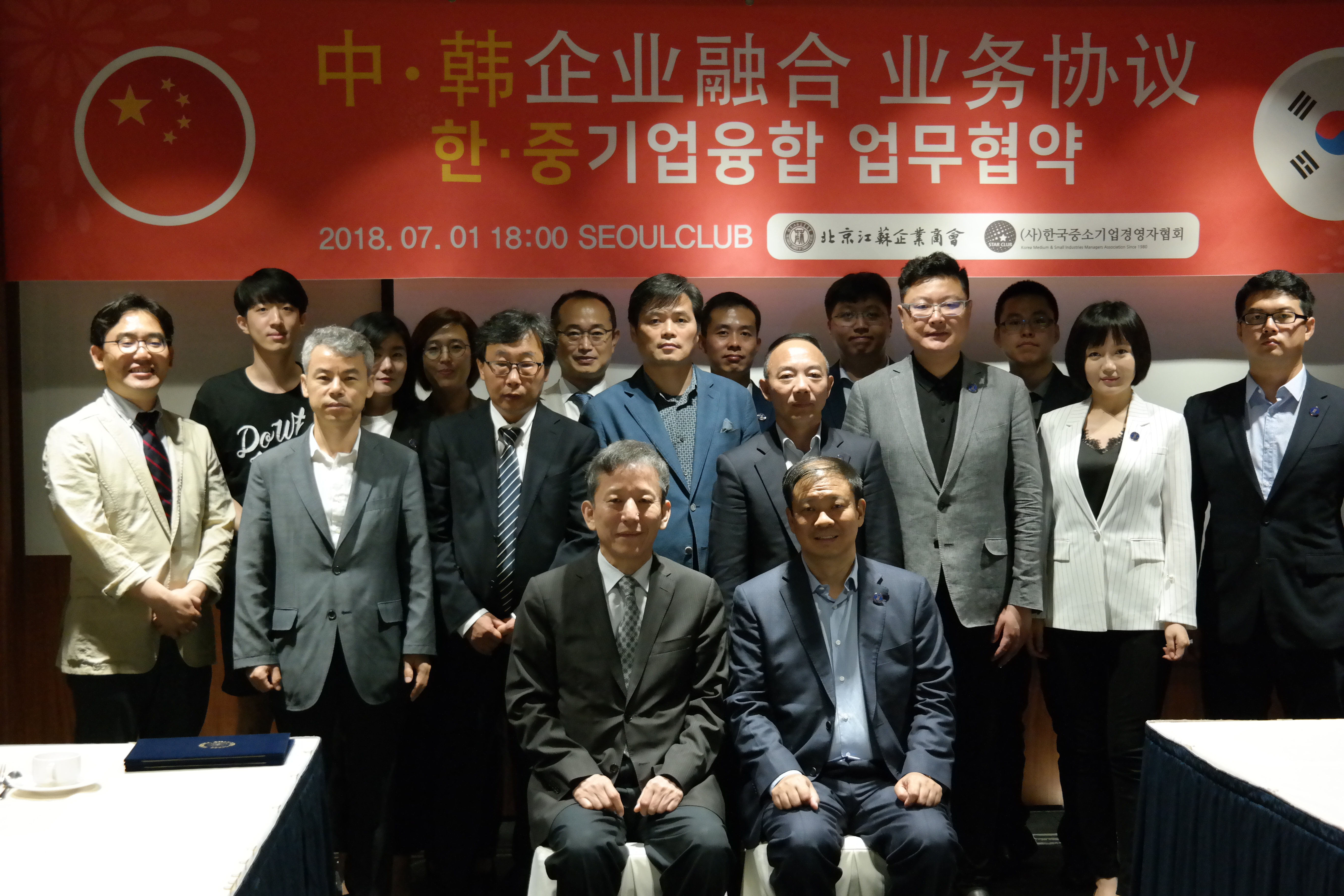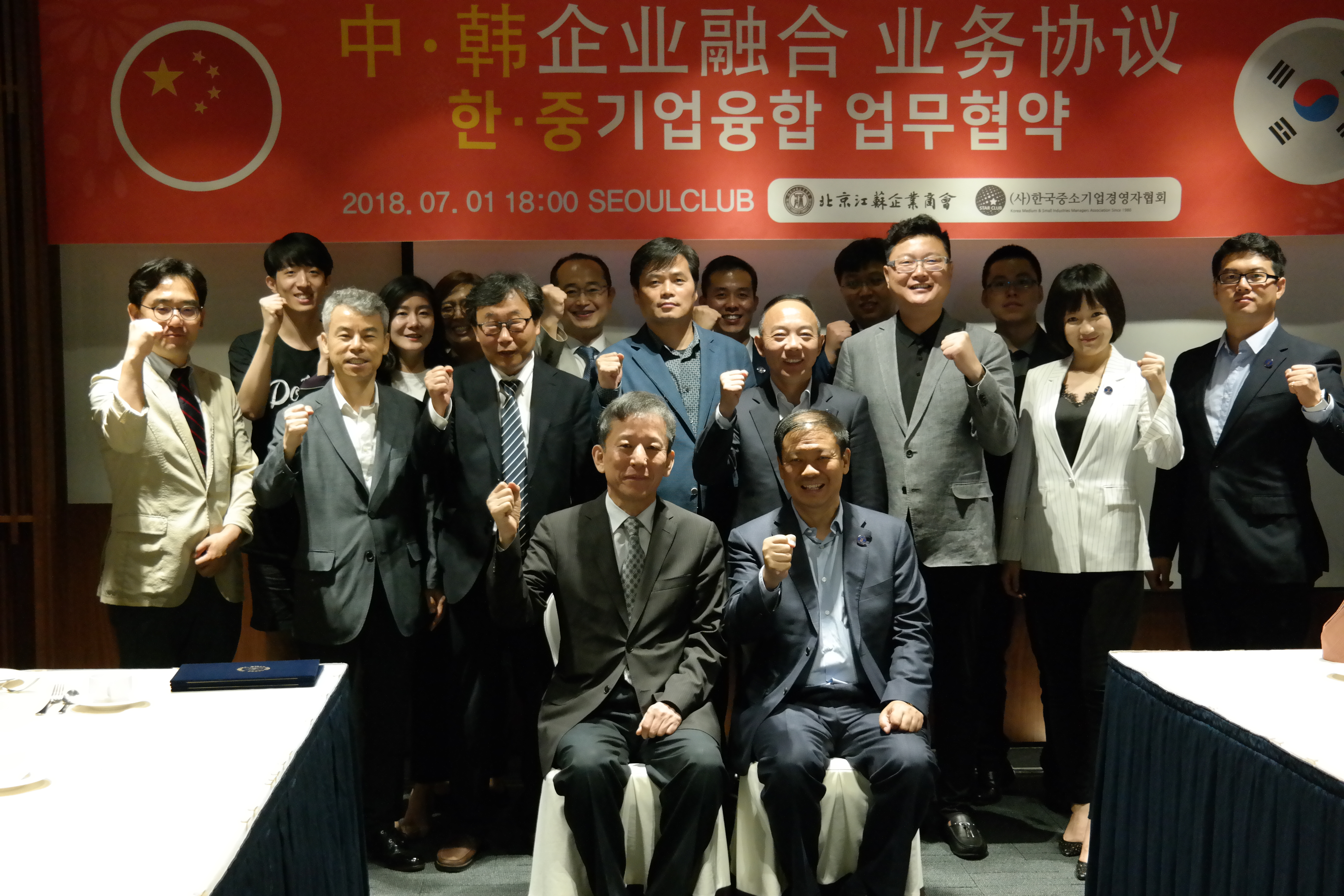 (사)한국중소기업경영자협회(회장 김송호)는 서울클럽에서 북경강소기업상회(회장 판위롱)와 한중 양국 중소기업의 교류촉진과 기업 융합을 통한 동반성장과 우호증진을 위한 업무제휴 협약을 체결했다.