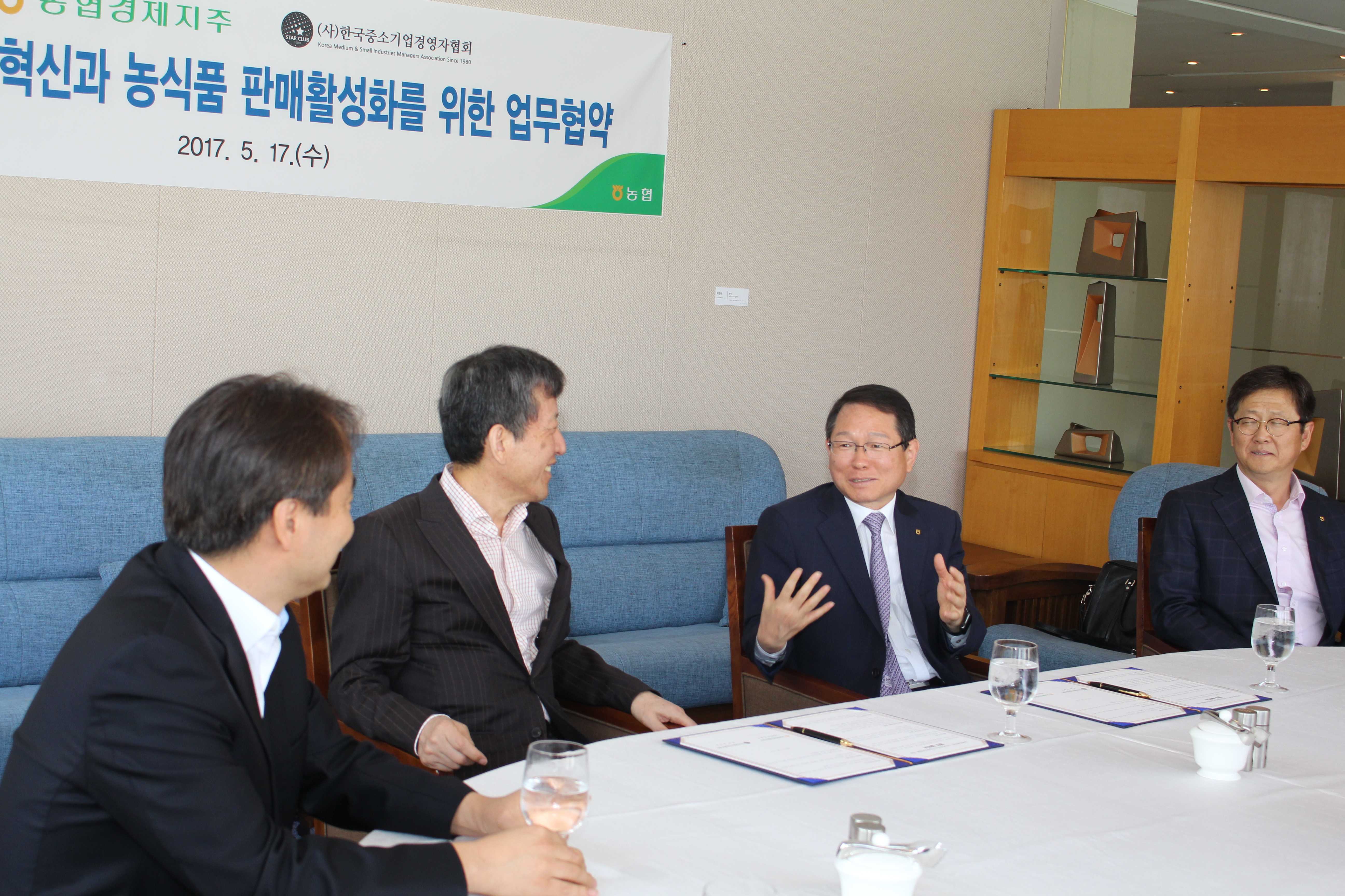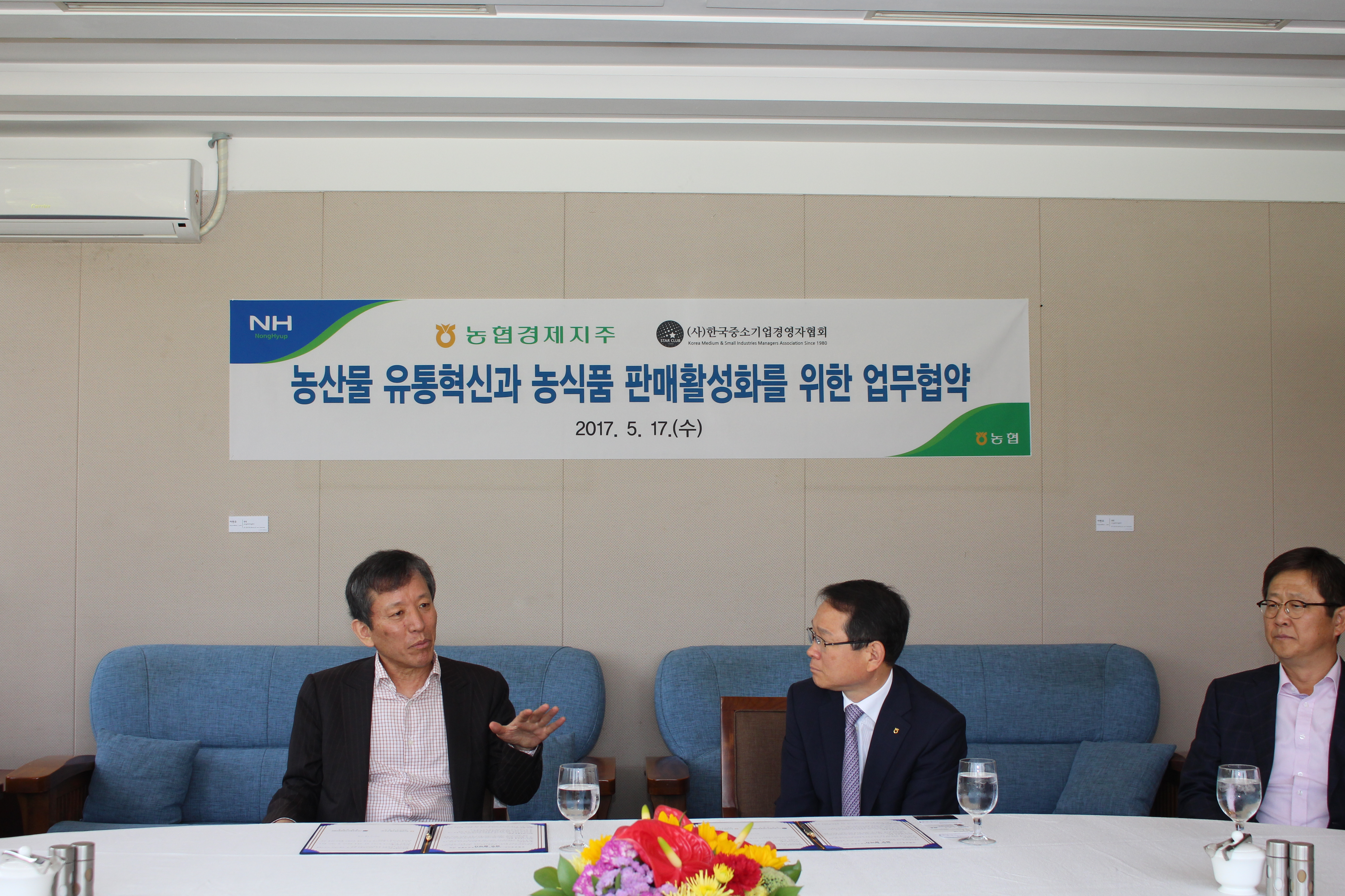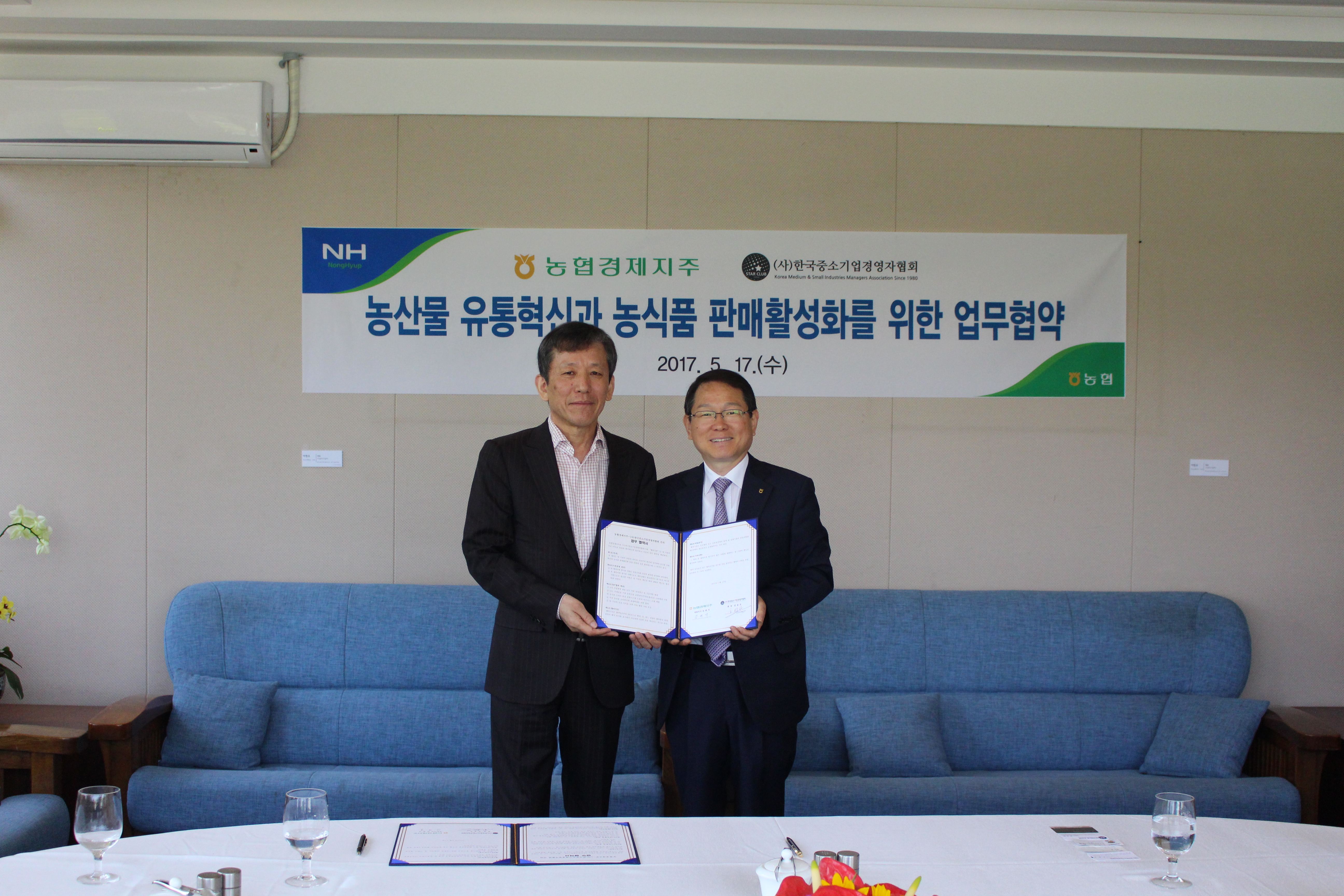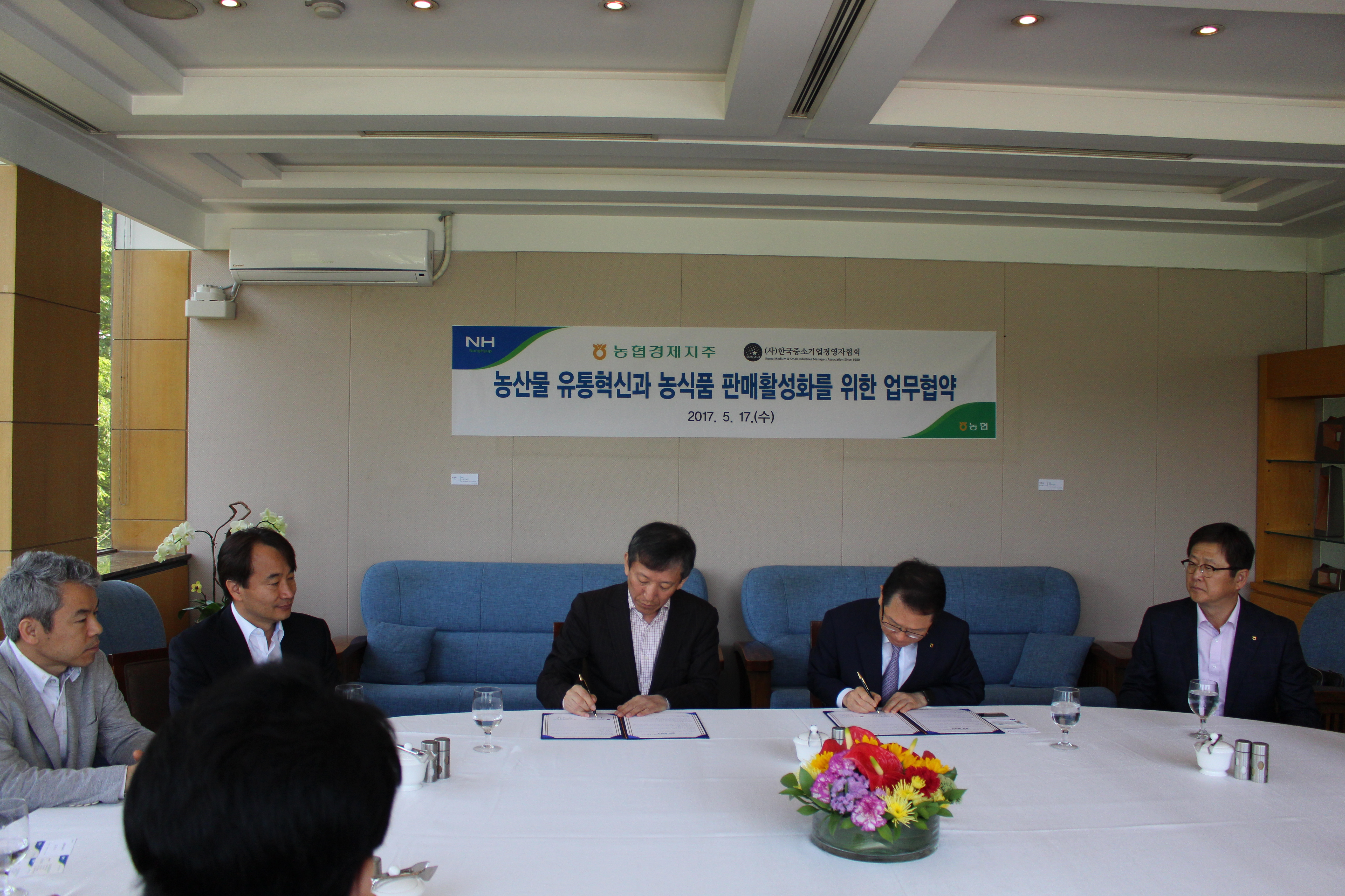농협(회장 김병원)경제지주와 (사)한국중소기업경영자협회는 지난 17일 서울클럽(서울시 중구 장충동 )에서‘농산물 유통혁신과 농식품 판매활성화를 위한 업무협약’을 체결했다.