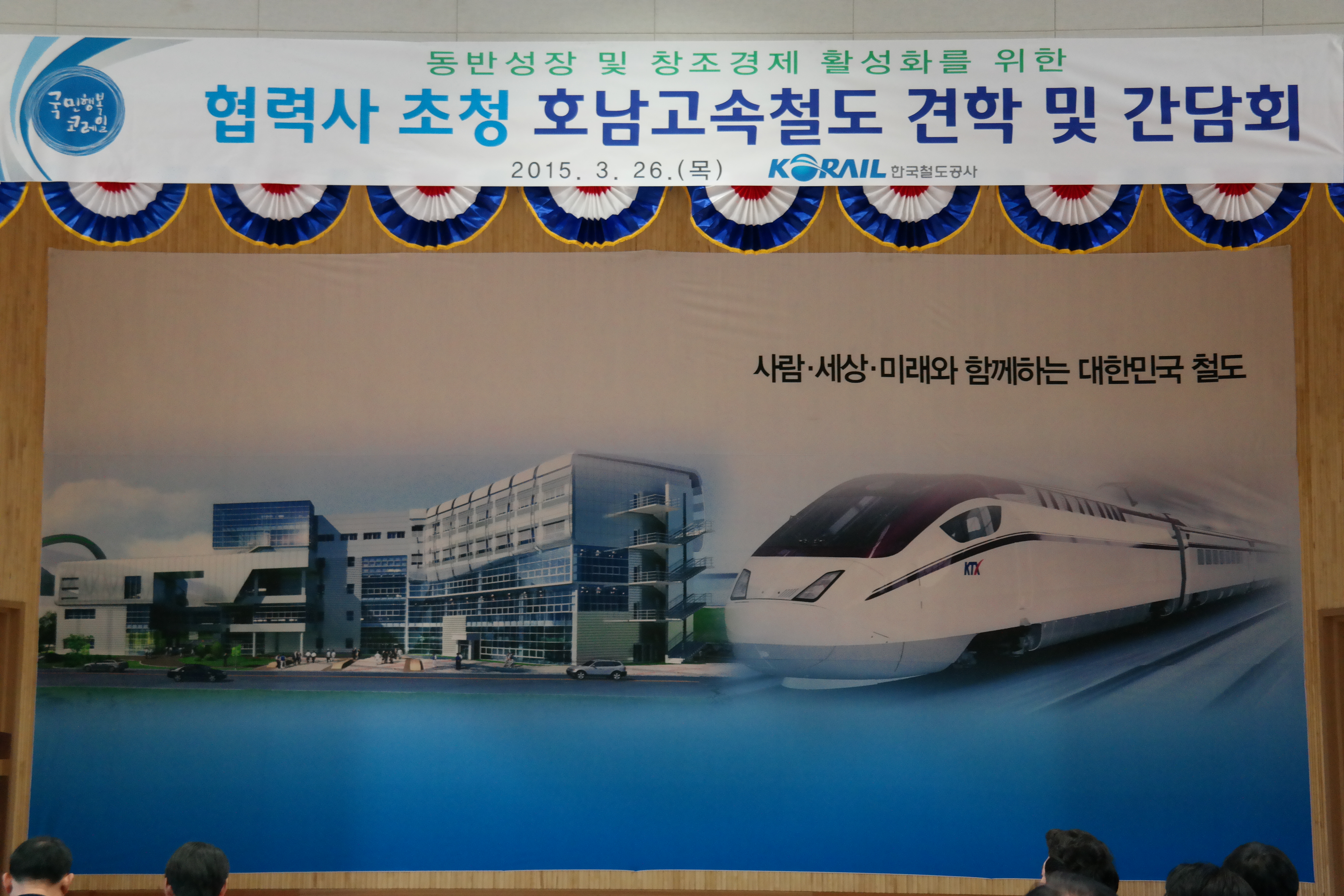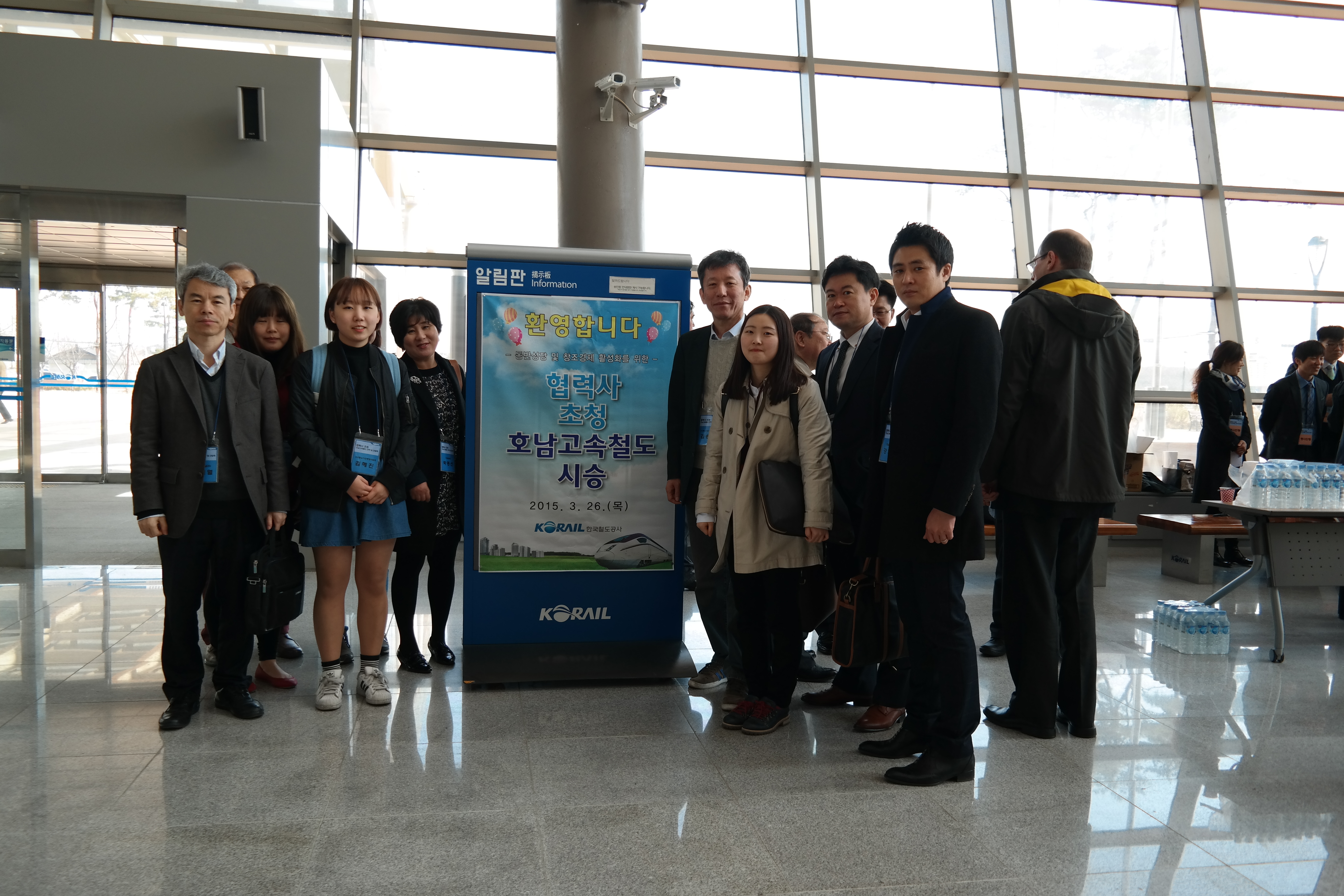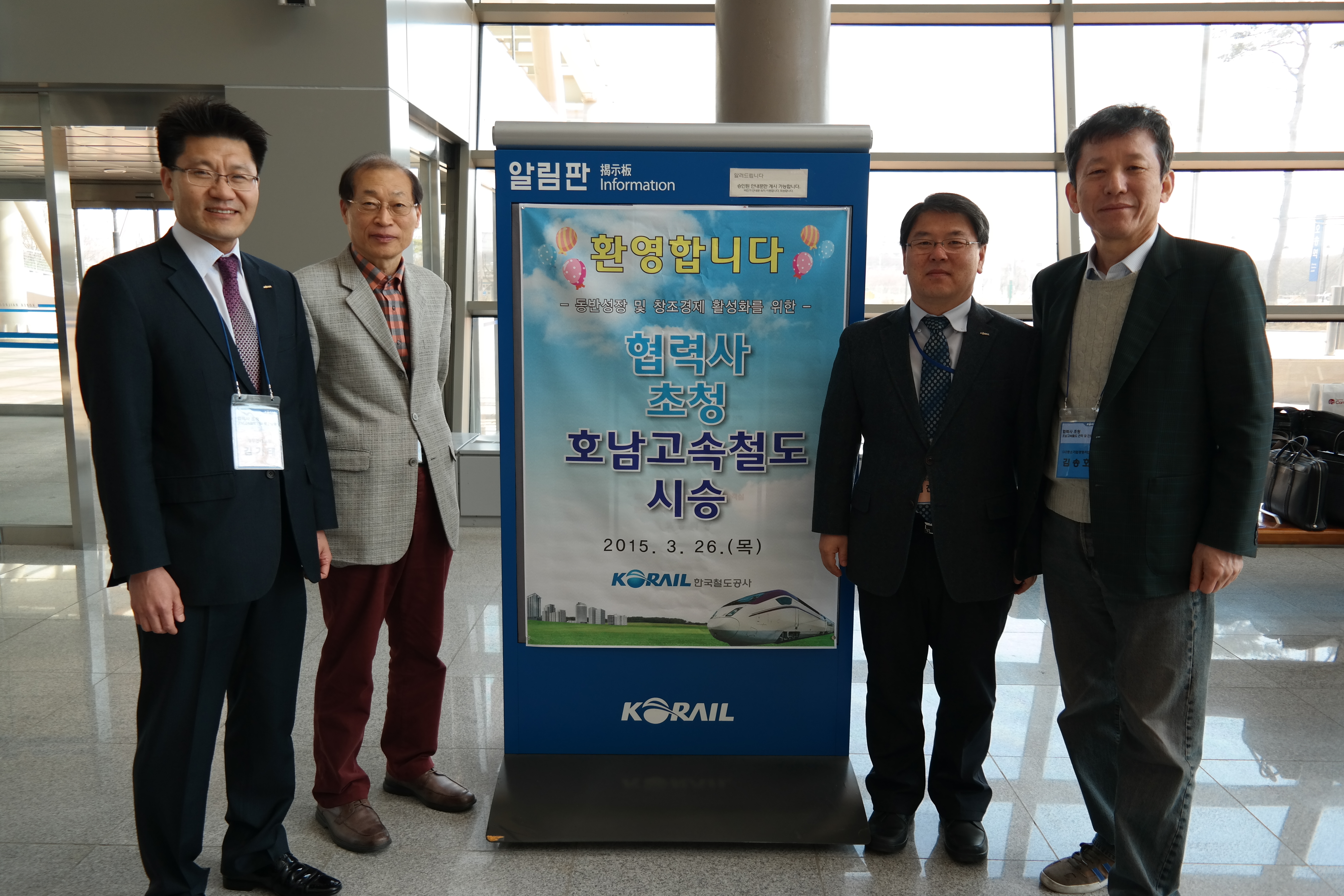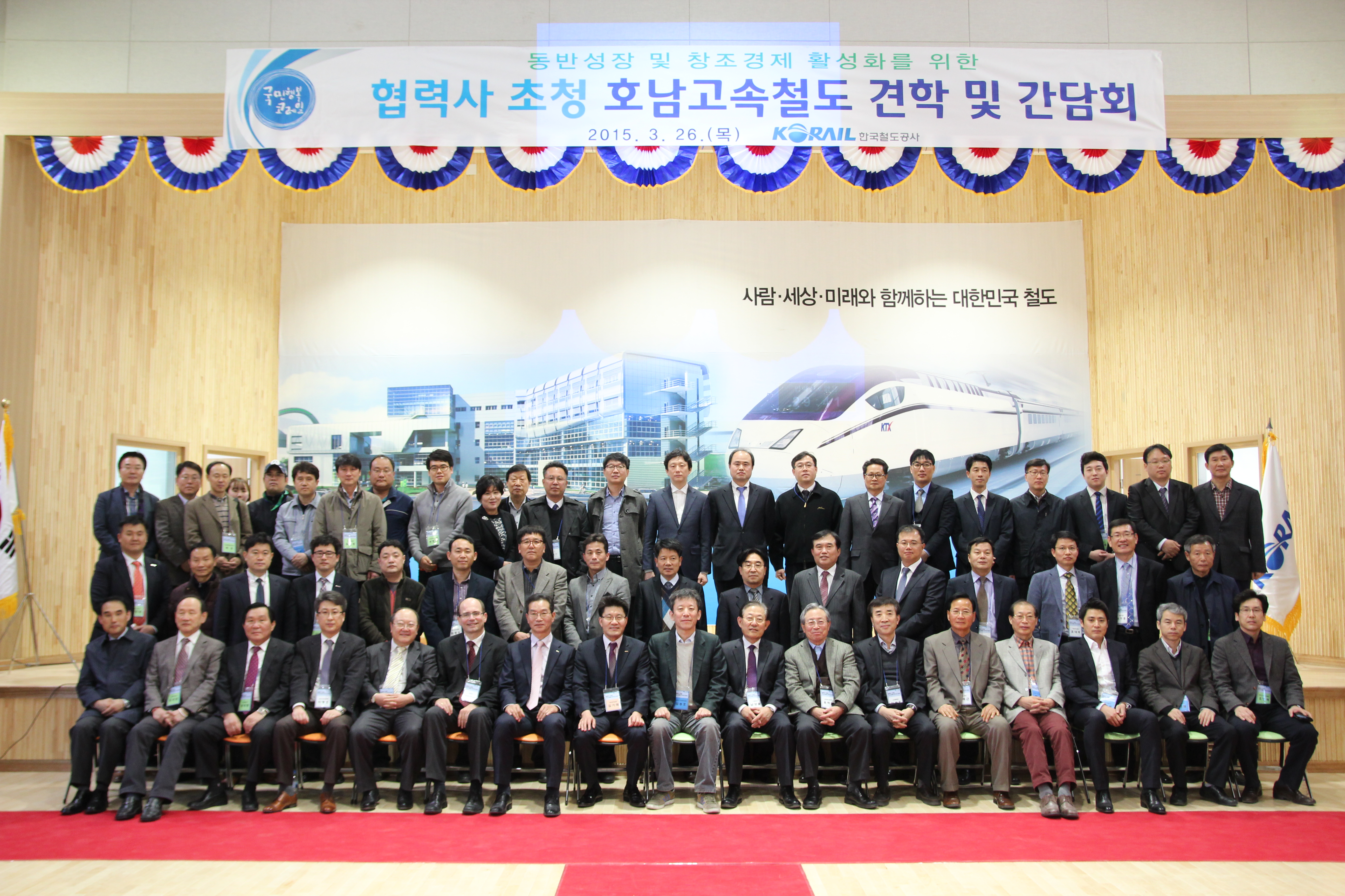 김송호 회장과 협회 임원 등이 한국철도공사 초청으로 동반성장 및 창조경제 활성화를 위한 호남고속 철도 시승식에 참석했다. 코레일 협력사 임직원 67명과 우리 협회 회원사 임직원 13명이 참석하여 호남고속철도 사전 체험과 호남고속차량정비센터 견학 및 고속철 개통 조기안정화를 위한 간담회 등이 개최되었다. 오송역에 집결한 행사 참관인들은 김기태 코레일 재무관리실장의 안내로 제9007호 시승열차에 탑승한 후 광주 송정역으로 이동하여 점심식사 후 호남고속차량정비센터에서 견학과 간담회를 진행한 후 상경하였다.