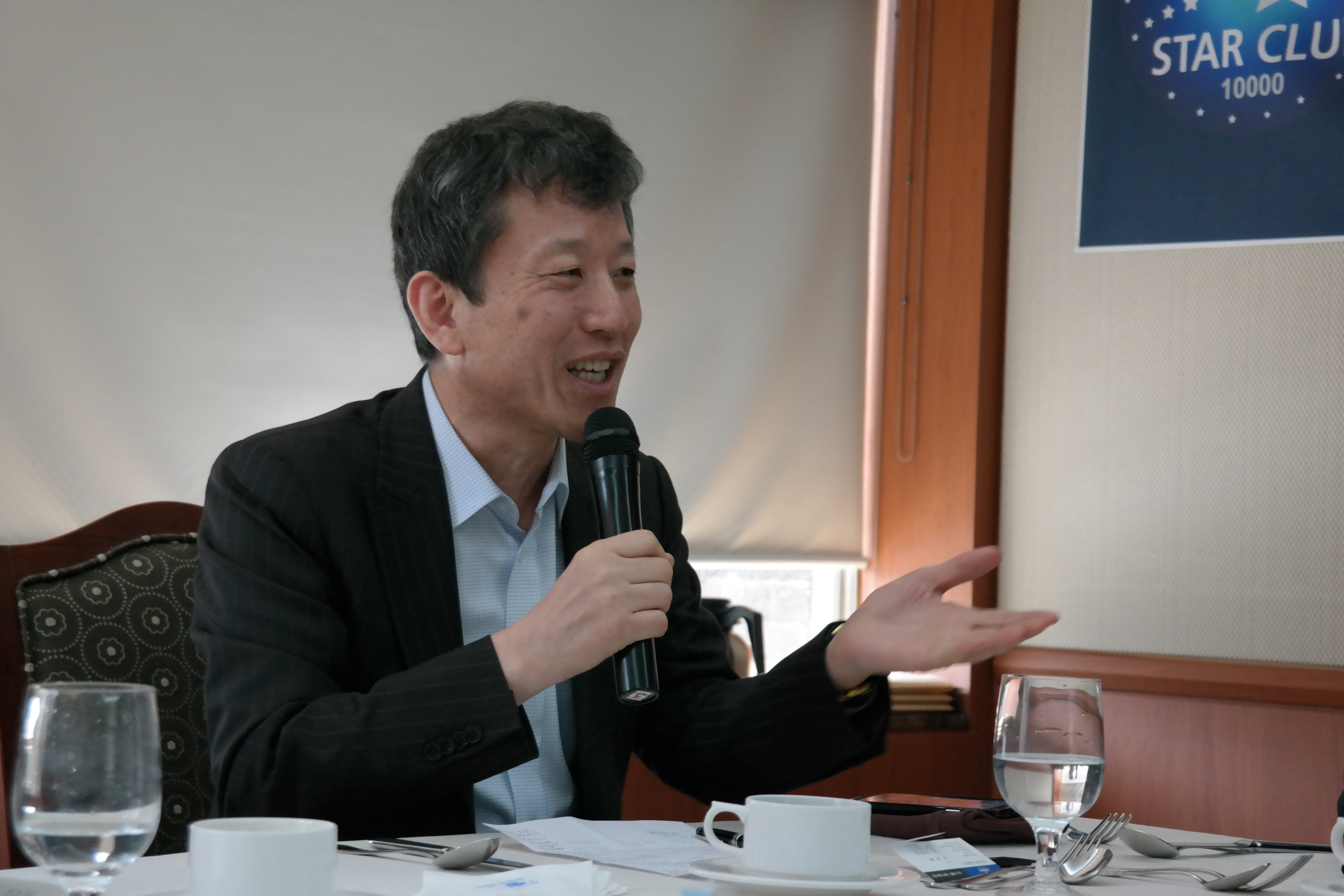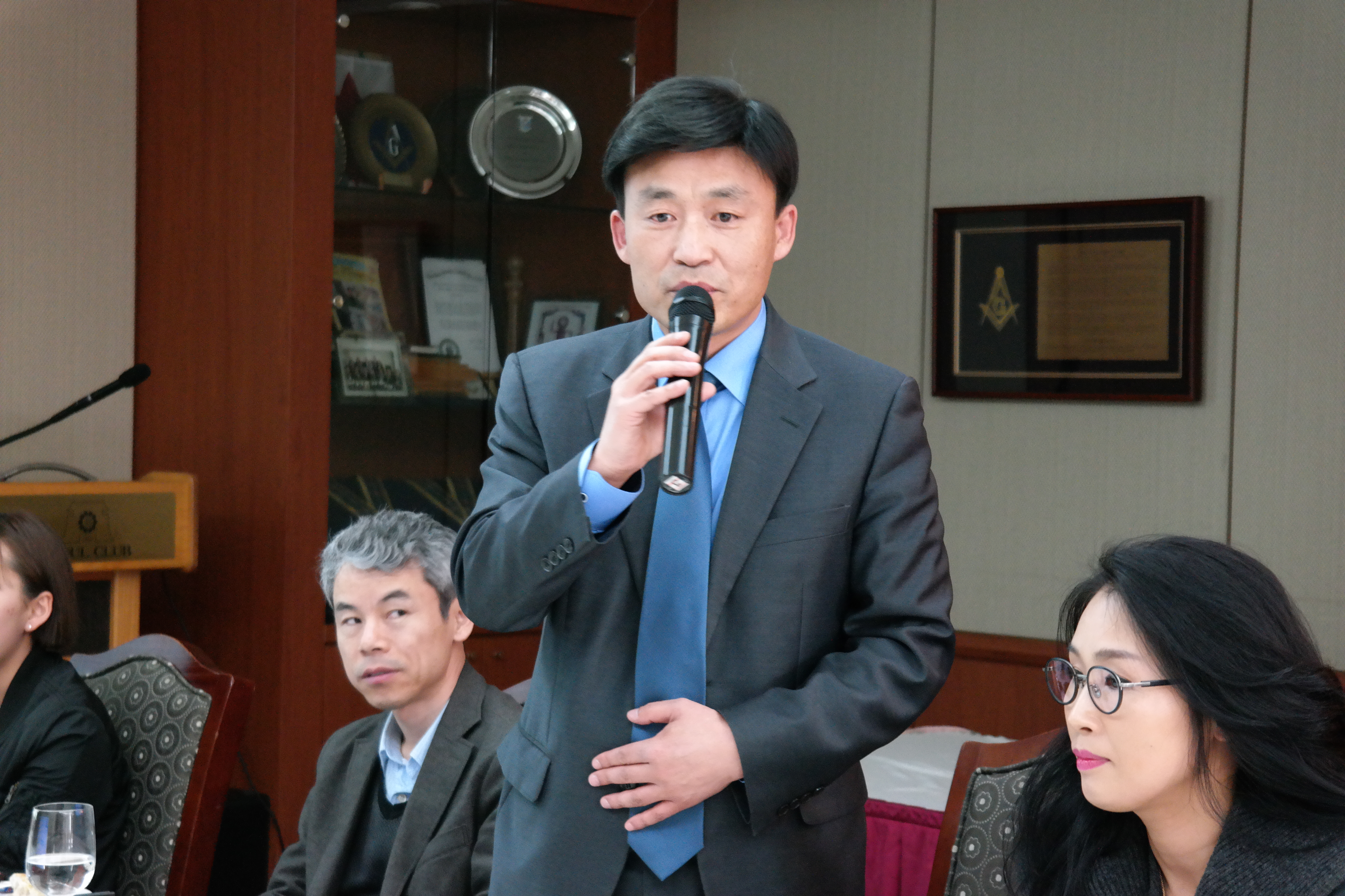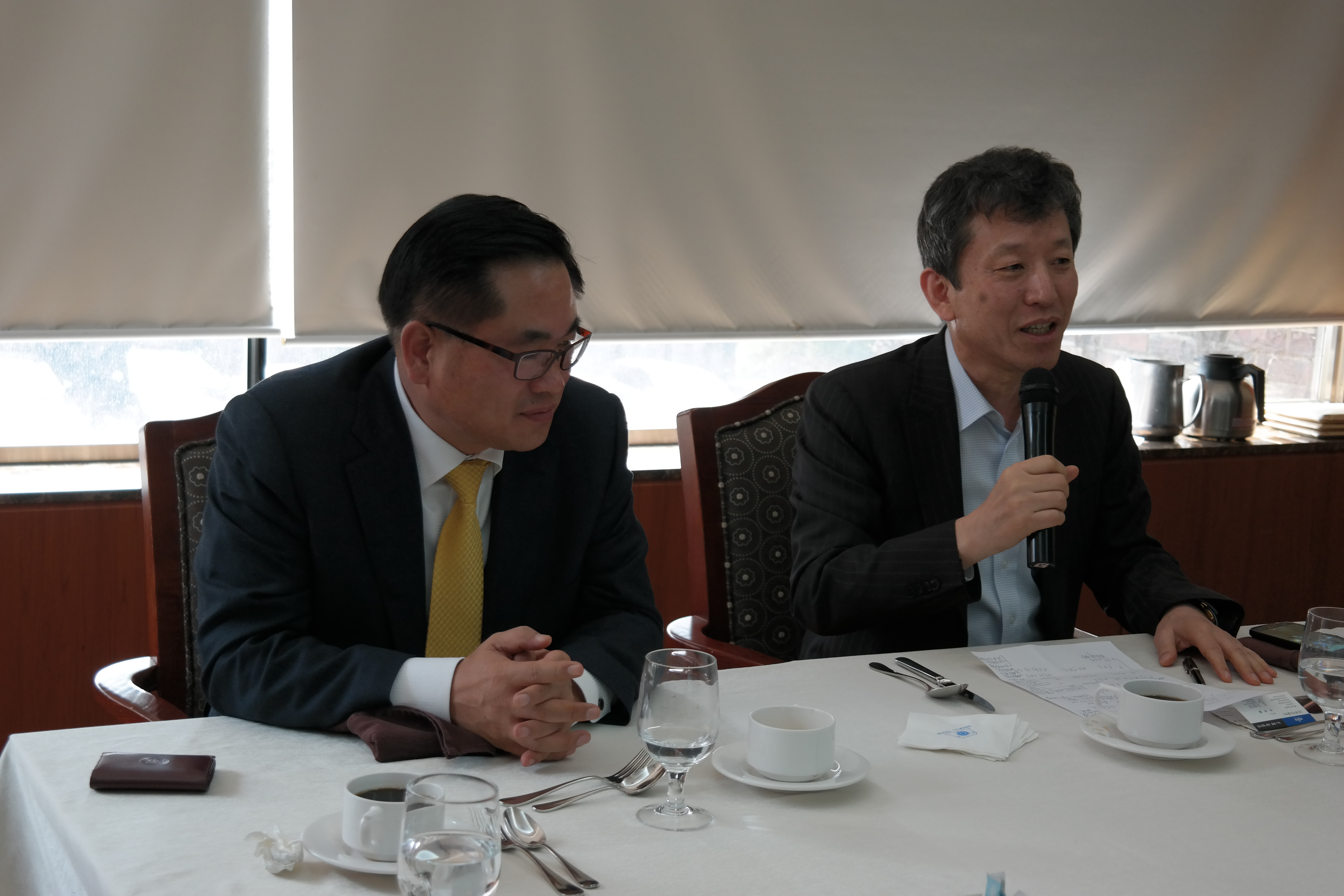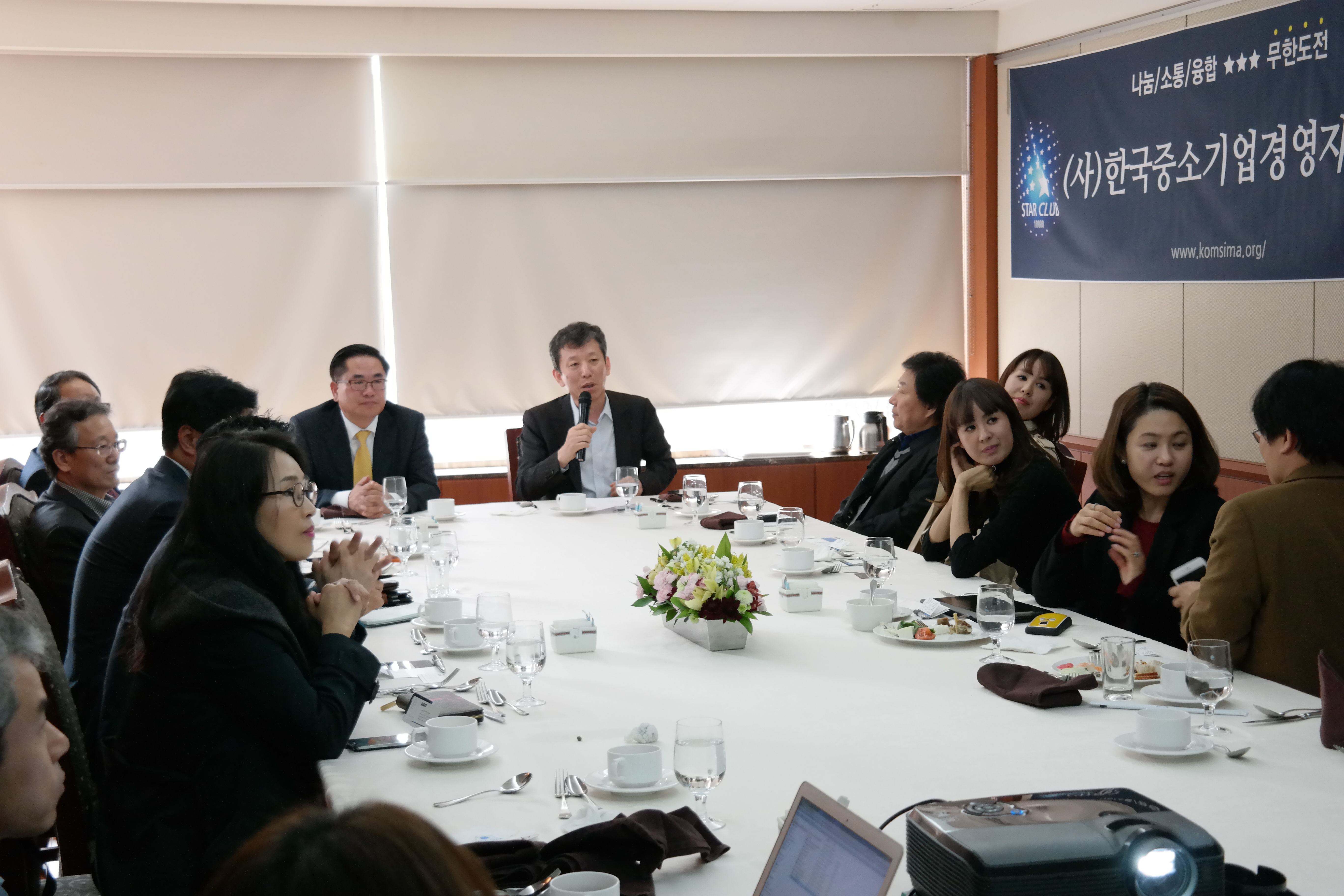3월 27일 천기화 수석부회장(한동알앤씨 회장)이 업계에서 두각을 나타내고 있는 CEO들을 초청하여 서울클럽에서 간담회를 갖고 김송호 회장과 함께 협회의 운영 방향을 설명하고 협회 활동에 동참할 것을 권유하고 있다.