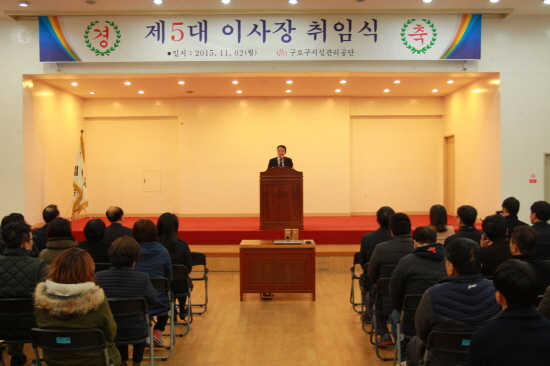 구로구시설관리공단은 2일 공단 4층 강당에서 전 임직원들이 참석한 가운데 제5대 이사장 취임식을 갖고 신임 김완호 이사장이 취임했다.