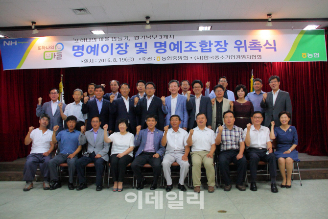 NH농협 경기 양주시지부(지부장 이충훈)는 19일 장흥농협에서 ‘또 하나의 마을 만들기 명예이장 및 명예조합장 위촉식’을 갖고, (사)한국중소기업경영자협회 회장(김송호·스타뱅크 대표)과 부회장 4명을 5개 마을 명예이장과 5개 지역농협 명예조합장으로 각각 위촉했다. 중소기업 경영자들의 명예이장 및 명예조합장 위촉은 6월 4곳에 이어 두번째다.