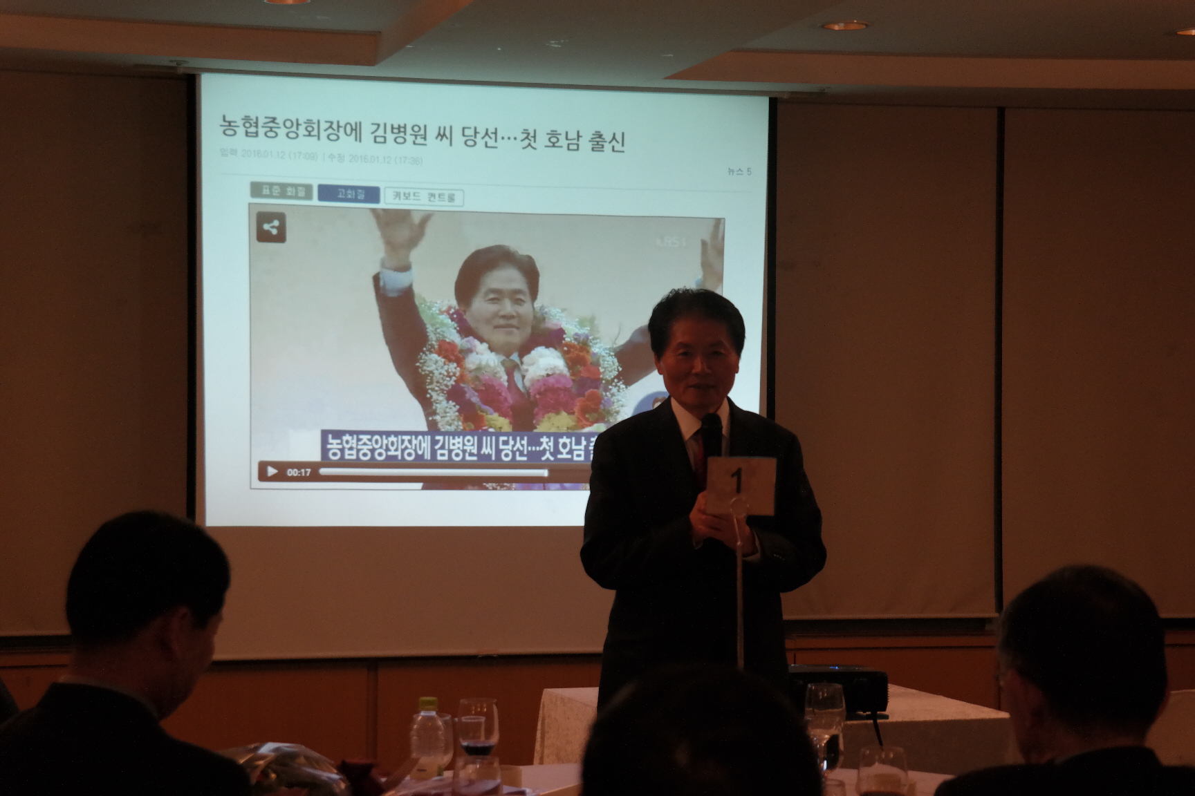 김 당선인의 이번 행사 참석은 지난 1월12일 농협중앙회장 선거에서 당선된 뒤 처음 가진 첫 공식 일정이며, 다음달 중순께 농협중앙회장에 공식 취임할 예정이다.