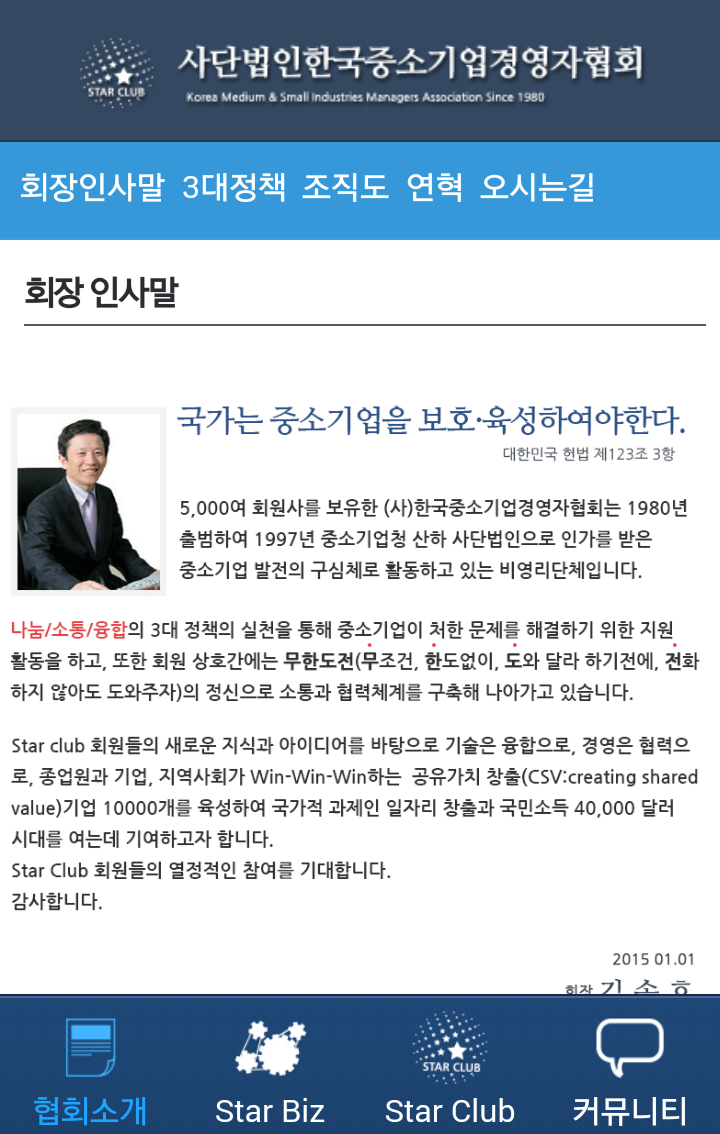 우리 협회의 홈페이지는 다른 단체들의 그것과는 다르게 미사여구나 군더더기는 빼고 핵심가치를 세우고 '스타클럽'을 브랜드화 하기 위한 전략이 돋보입니다. 아울러 언제 어디서나 소통할 수 있는 플랫폼이 되기 위해 스마트폰앱도 이번 임시총회를 통해 오픈했습니다.